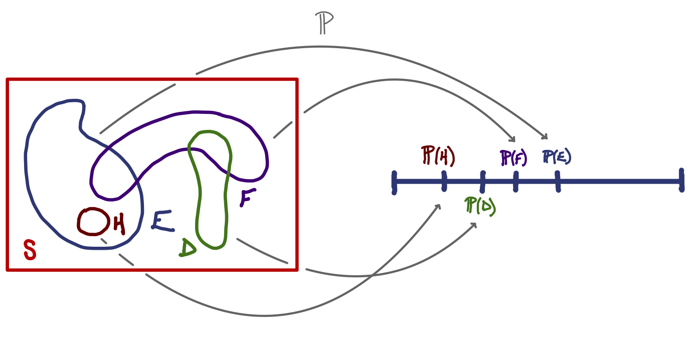 - Events are capital letters in the middle alphabet: \(E, F, G\).