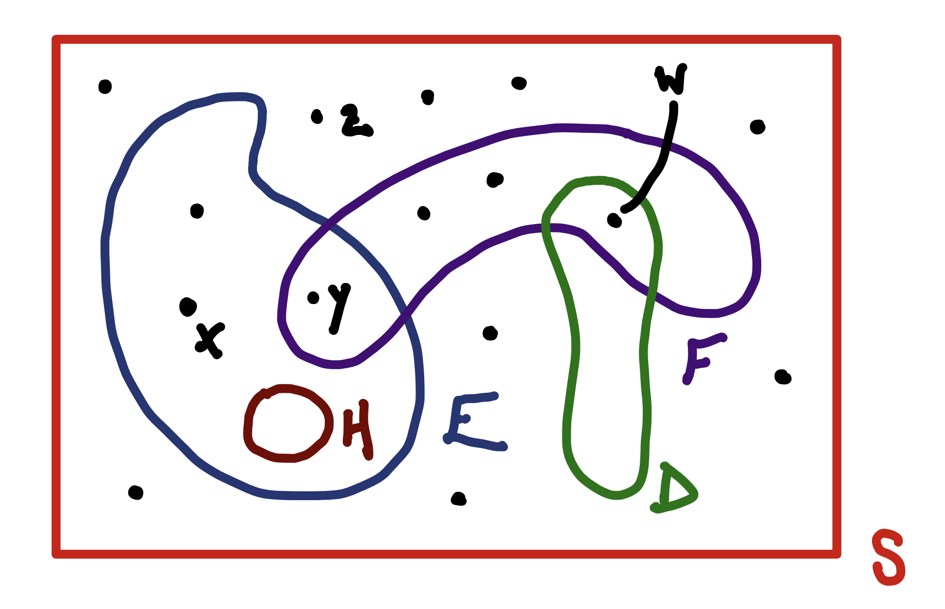 - \(A \cup A^c = S\), \(A \cap A^c = \emptyset\)