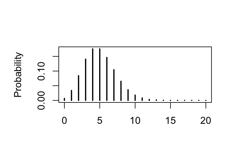 plot(x, y, type='h', lwd=2, xlab="", ylab="Probability")
